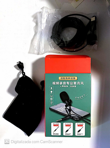 Microfone de lapela USB-C Type C. Acompanha NF, caixa e capinha protetora